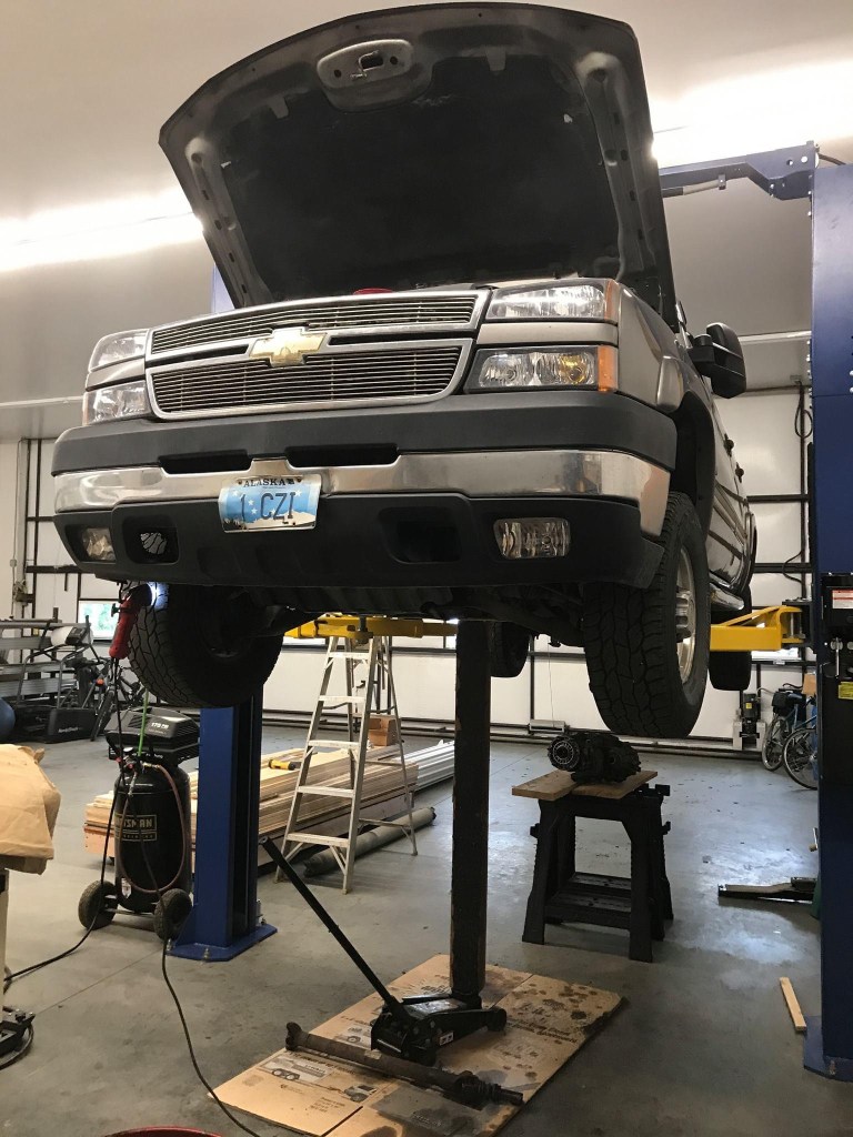 Anyway today’s project continuing from yesterday is to get up enough strength and energy to put the transfer case back in my truck. It needed a simple mod to correct a design flaw. I need the truck to get the boat in the water tomorrow to get to the trees. But what I’m really doing is getting the truck ready for my 25th plus trip down the Alcan to Georgia to pick up an enclosed cargo trailer next week. I had nice one last year but because Trump’s economy is improving so much, this guy had a good job and came by with a wad of cash that I just couldn’t refuse for my trailer. Now I have to drive all the way to Georgia to get another one like it. There must be some government program to at least cover my expenses since it is Trumps fault that I am inconvenienced. If anyone knows of one please let me know.