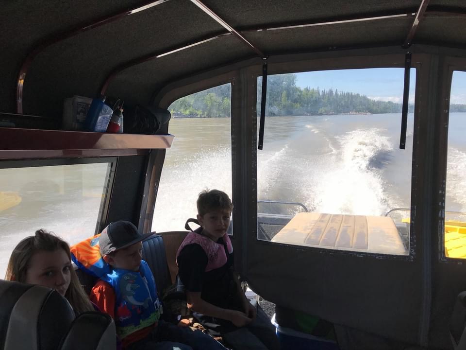 Woke up early. Beer was still loaded in boat from Monday. Added fuel to truck and boat. Grandkids up and fed. Life is good. Great 2 hour run up the river. Smooth ride, no wind, water level in the river is going down so no logs or other debris floating in the water. We arrived in time for lunch. Hauled all the beer about a quarter mile to the cabin. Don’t worry we have some 4 wheelers and trailers to carry everything. I’m to old for what I call the arm-strong method to do anything I can use a tool or machine to do easier. BTW I people in the lower 48 call 4 wheelers quads and they call snow machines snow mobiles.